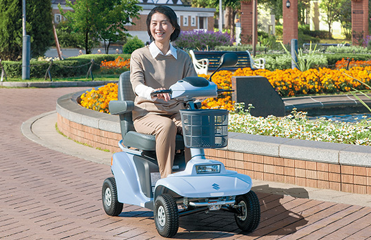 セニアカーは、買い物や散歩など日常の移動手段としてご利用いただける「ハンドル形電動車いす」です。